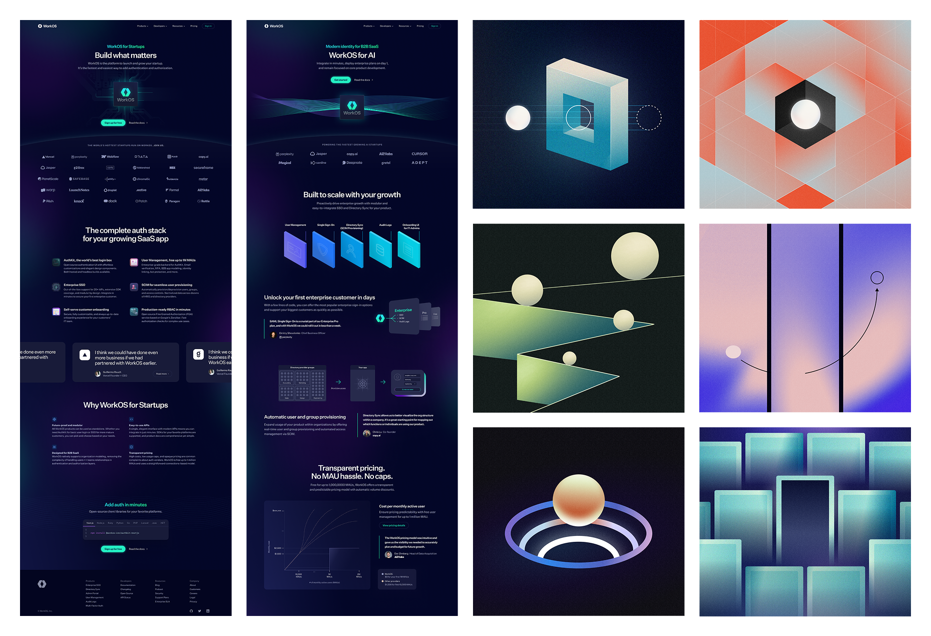 WorkOS competes with established providers like Okta and Auth0, as well as custom in-house solutions. Differentiation depended on speed, simplicity, and credibility. My work supported this by making product concepts visually accessible, ensuring marketing felt polished and modern, and delivering assets at the pace the business needed.