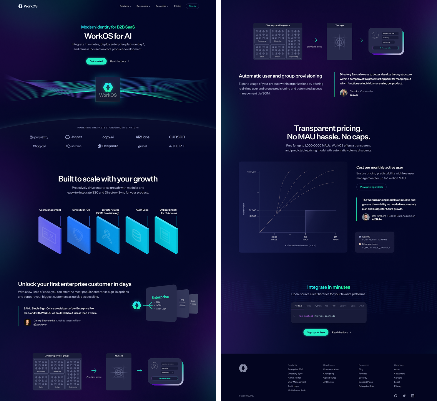 My contributions helped strengthen the visual foundation for WorkOS during a period of rapid growth. The illustrations made abstract features more accessible, landing pages supported growth and SEO goals, and the overall consistency of the work helped build credibility with developers and enterprise buyers.