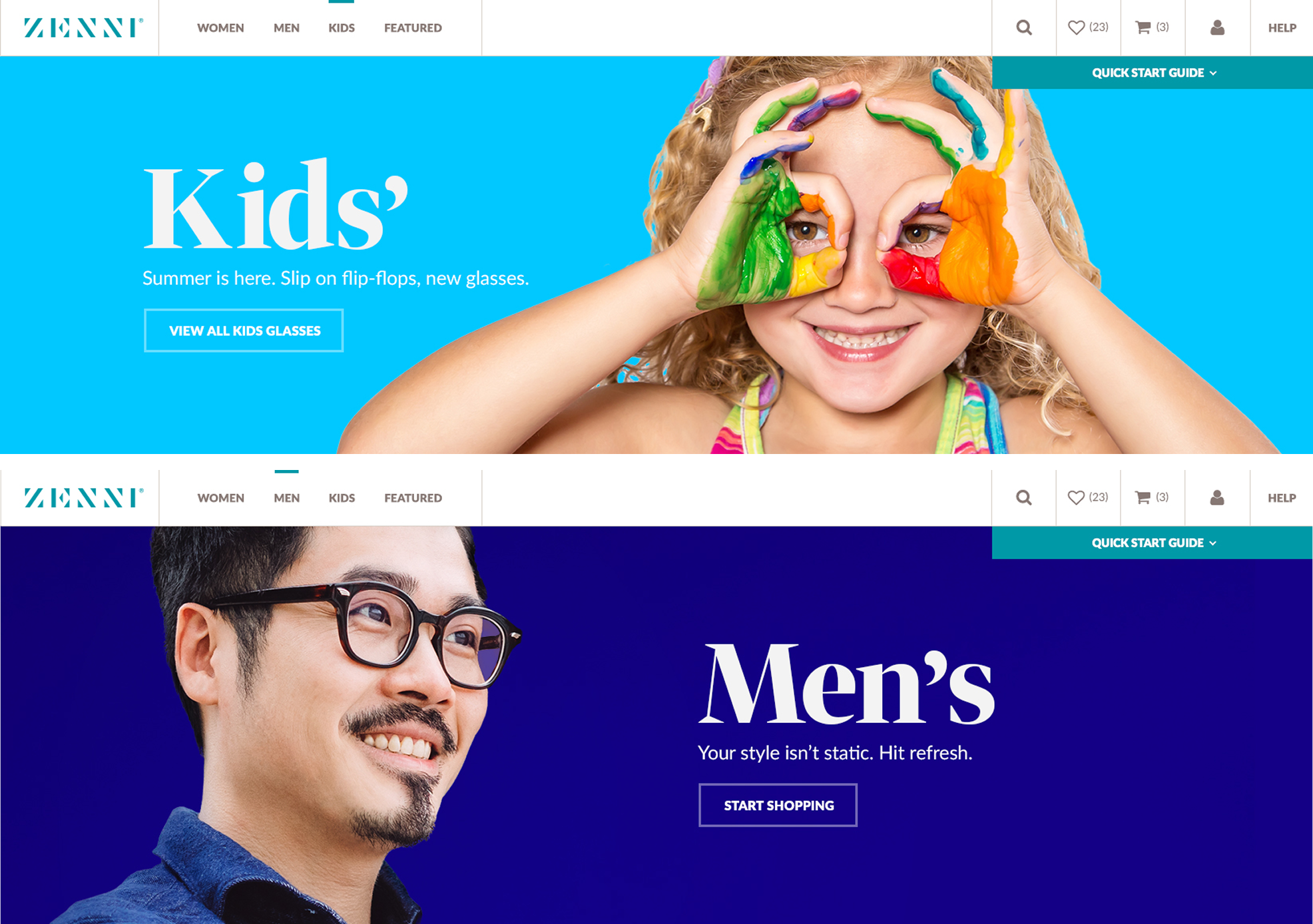 Zenni is a leading online eyewear retailer known for offering affordable, stylish glasses direct to consumers. As part of a broader initiative to grow its customer base and elevate its brand perception, Zenni underwent a full-scale rebrand. This included a new visual identity and design system that needed to be reflected across the entire digital experience, with a keen focus on key transactional and product-focused pages.